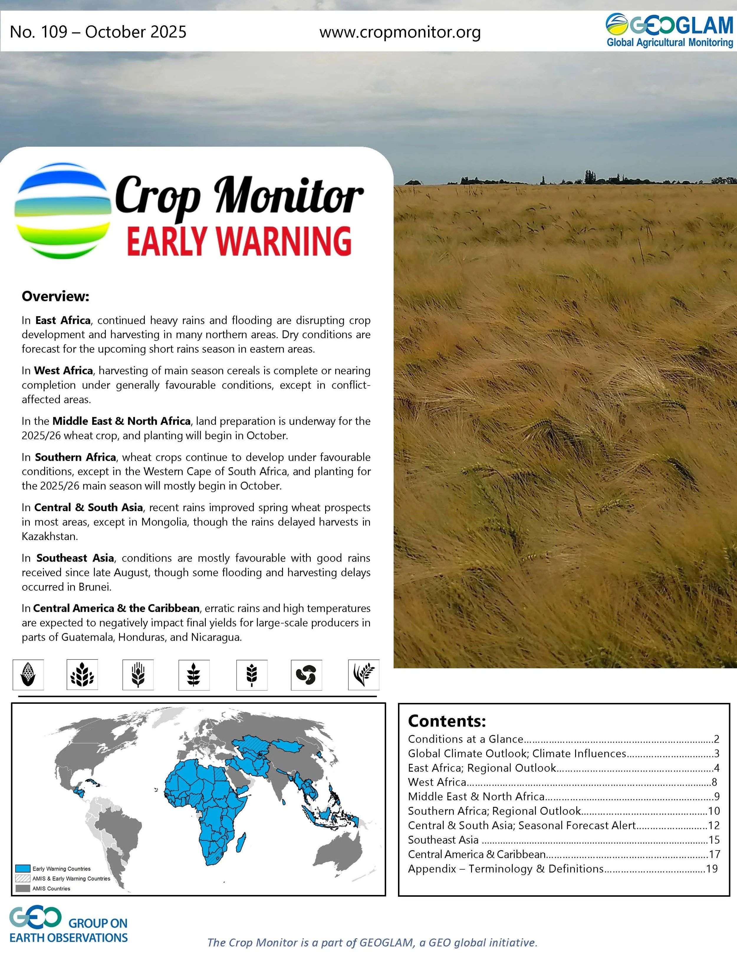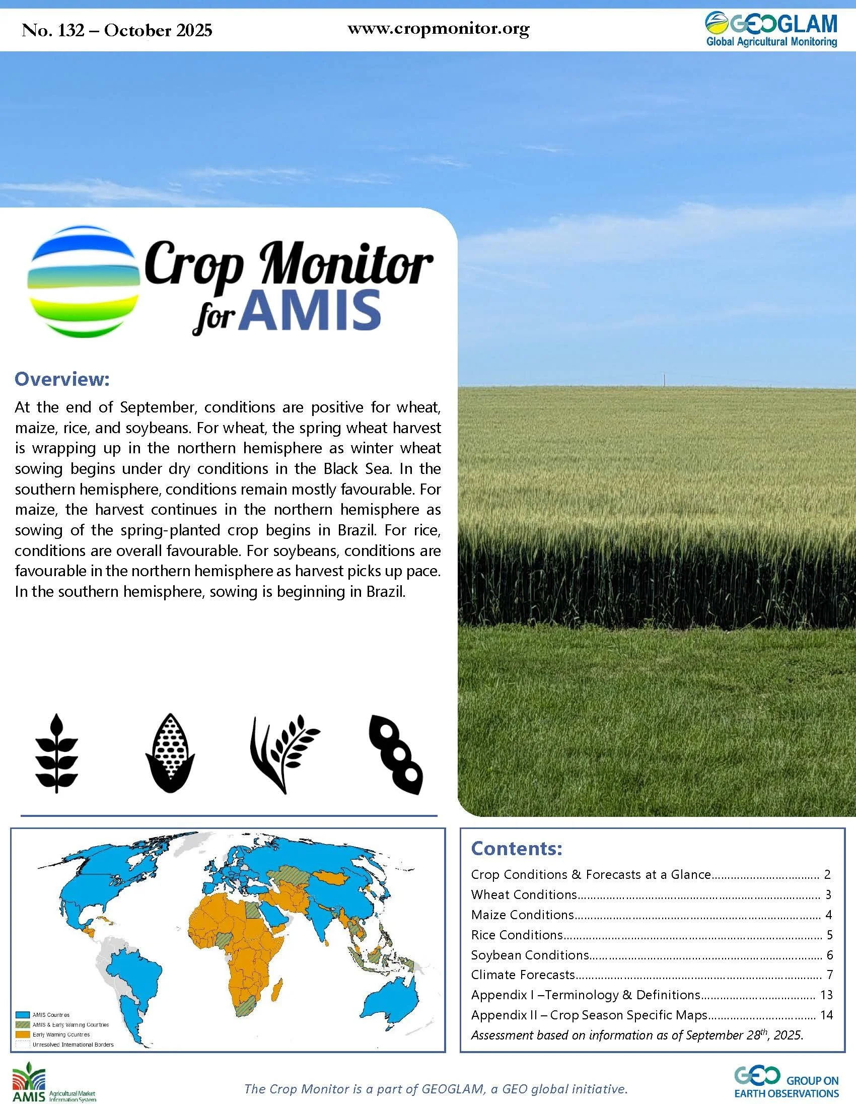 Open, timely, and science-driven information on crop conditions in support of market transparency and early warning of production shortfalls