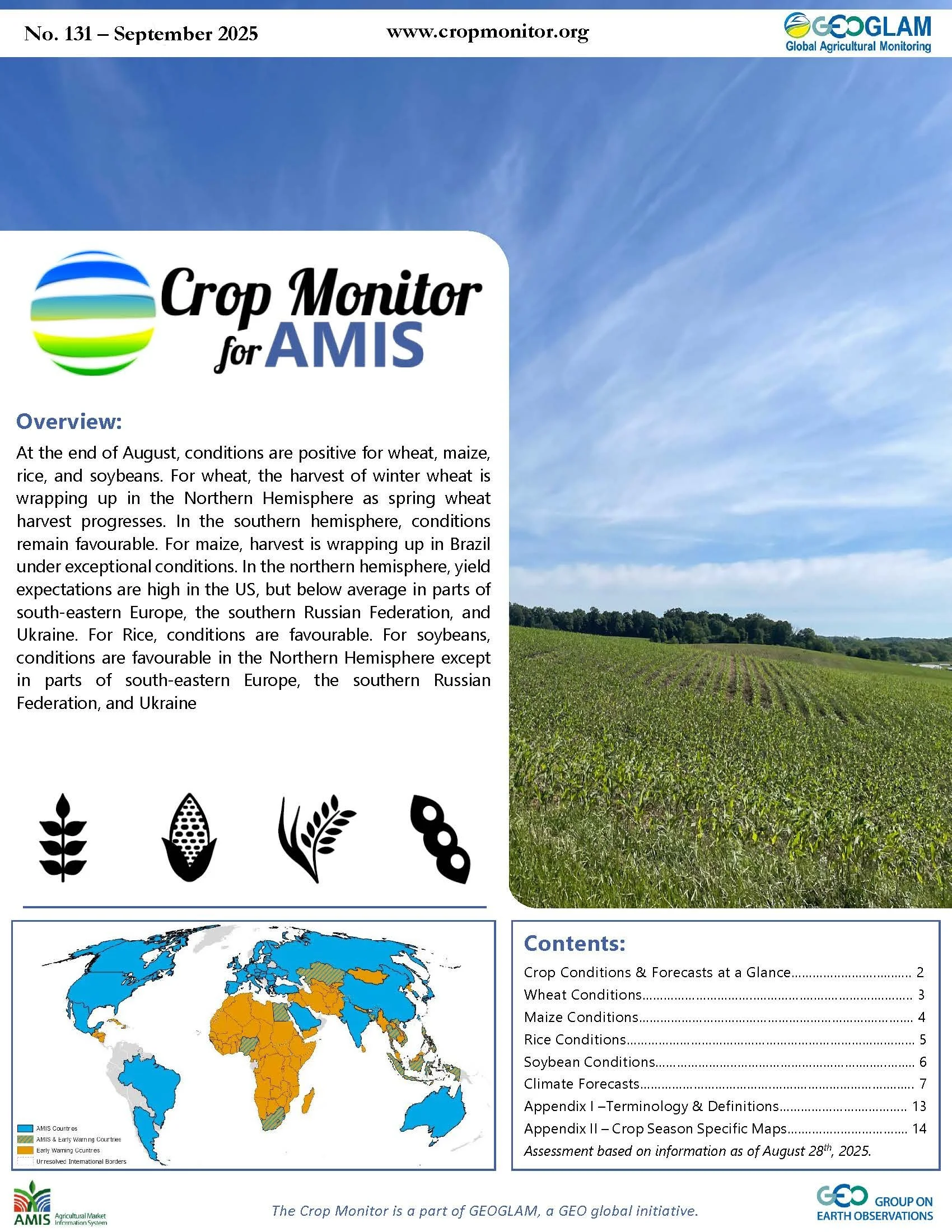 Information on crop conditions in non-AMIS countries can be found in the GEOGLAM Crop Monitor for Early Warning.