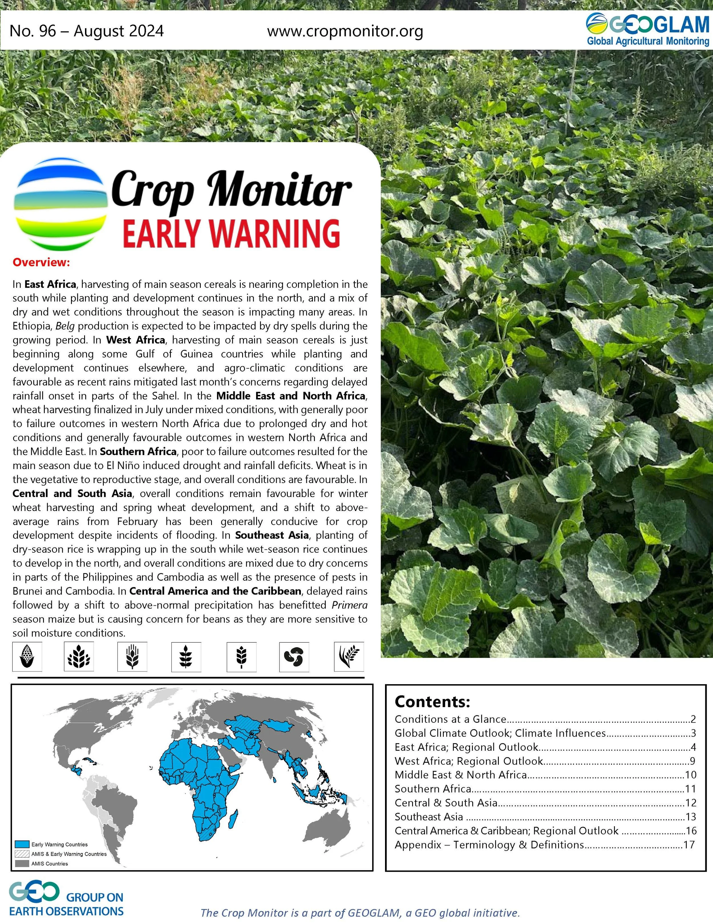 Information on crop conditions in the main production and export countries can be found in the Crop Monitor for AMIS, published August 1st, 2024.