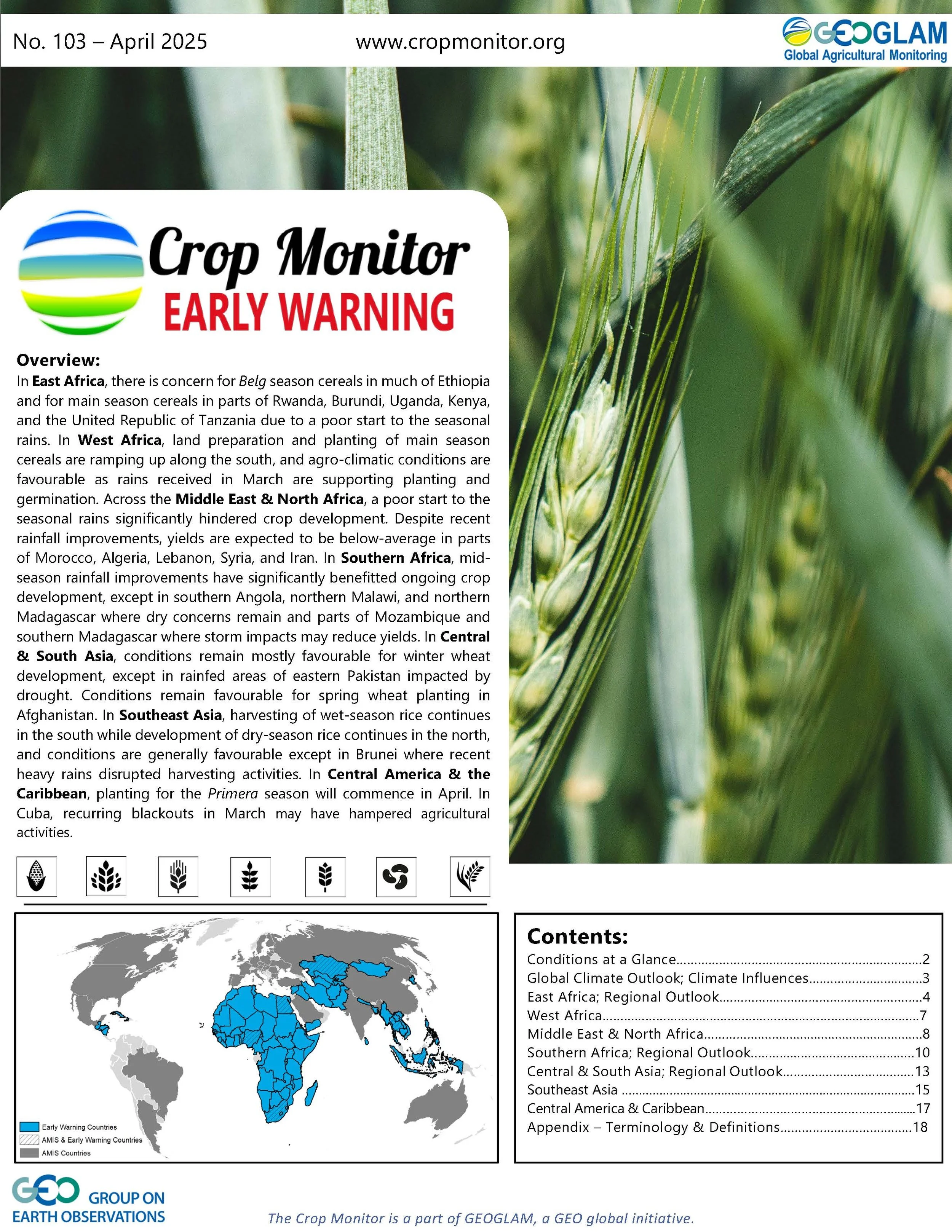 Information on crop conditions in the main production and export countries can be found in the Crop Monitor for AMIS, published March 6th, 2025.