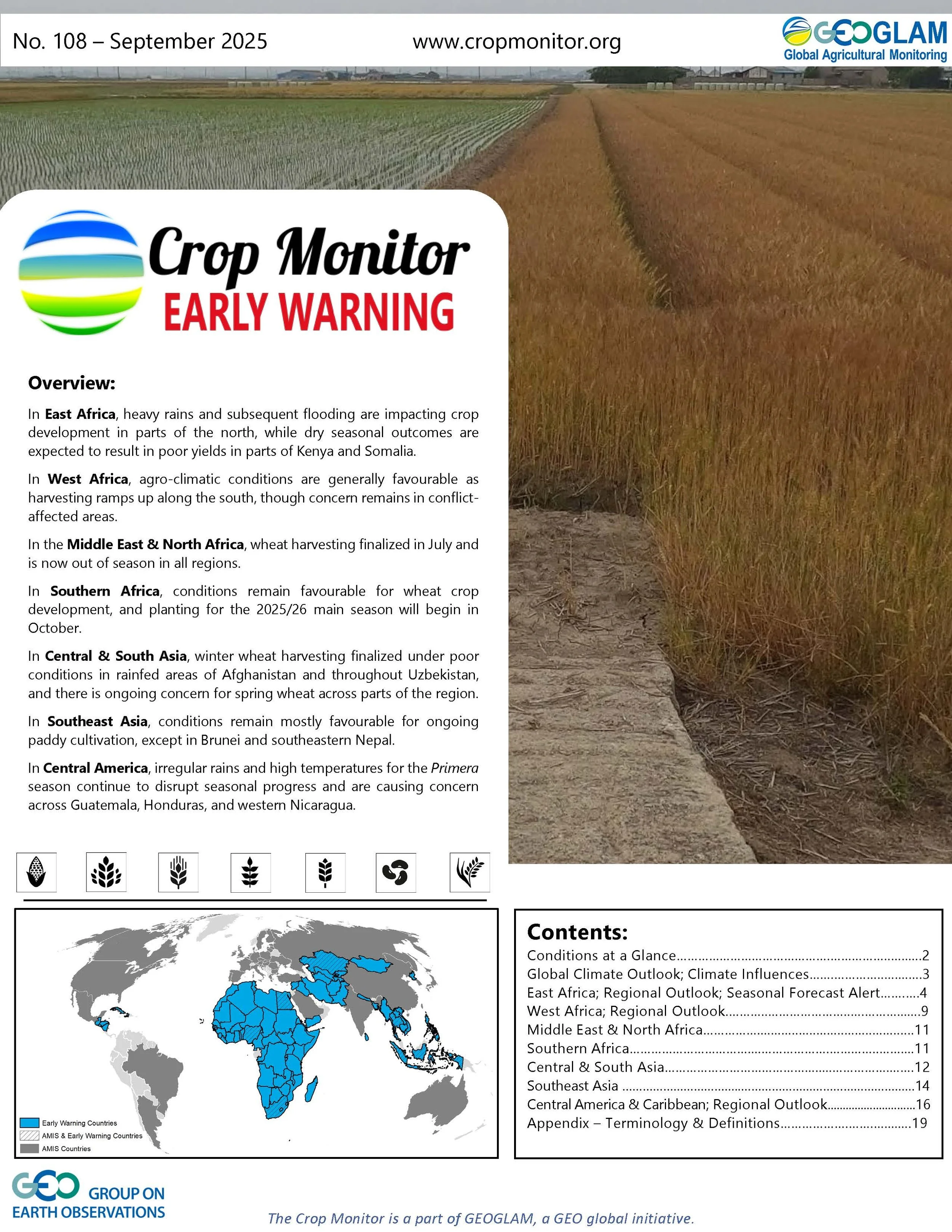 Information on crop conditions in the main production and export countries can be found in the Crop Monitor for AMIS, published September 4th, 2025.